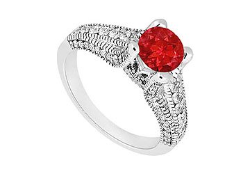~( ̄▽ ̄)~ Black Friday Ruby and Diamond Engagement Ring : 14K White Gold - 1.00 CT TGW Size 8.5 Deals