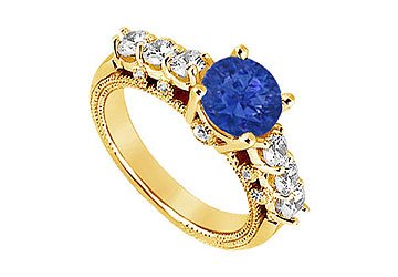 +++ Black Friday Sapphire and Diamond Engagement Ring : 14K Yellow Gold - 1.00 CT TGW Size 15 Deals